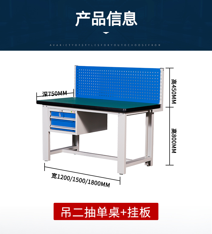 吊二抽單桌+掛板